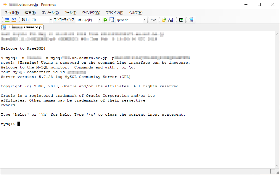 まず、さくらのサポートで教えられたコマンドは、恐らく、MySQL5.5に対応するものだったと思います。