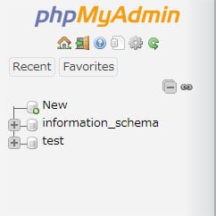 ページの再読み込みを行うと、左側のツリーメニューに「phpmyadmin」が追加されます。